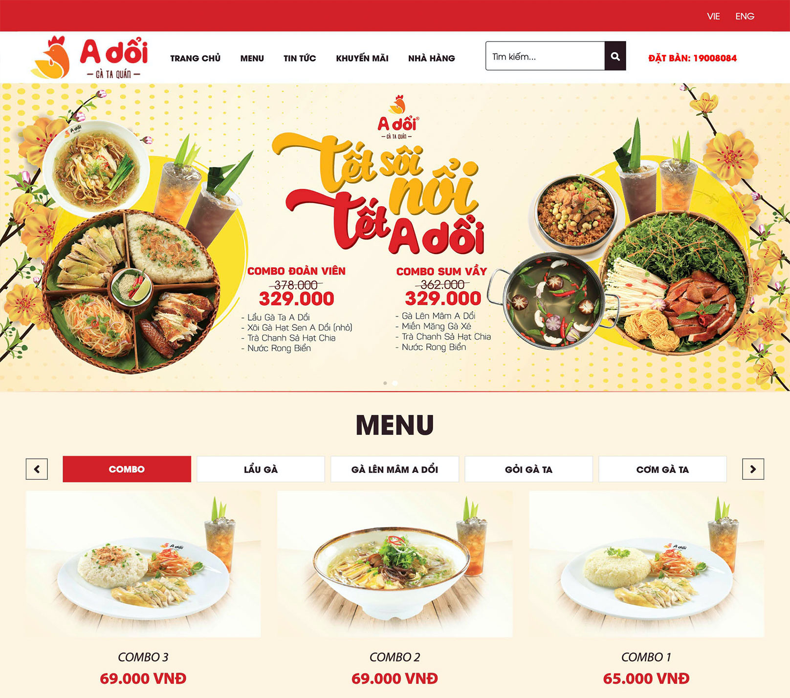Với Thương hiệu A Dổi - Gà ta quán, TMP thiết kế website như một giải pháp cho câu chuyện giải quyết bữa ăn trưa nhanh nhưng vẫn đảm bảo chất lượng trong thời đại 4.0. Giao diện bắt mắt, thông tin đầy đủ, ngắn gọn, các tùy chọn tìm kiếm và liên hệ dễ sử dụng, TMP tinh gọn tối đa để mang đến cho người xem con đường tiện lợi, nhanh chóng nhất cho bữa trưa “vội” của mình. Đồng thời, việc tiết kiệm thời gian cho khách hàng cũng là một lợi thế giúp A Dổi tối ưu hóa nguồn lực, chất lượng sản phẩm, mang lại hiệu quả doanh thu.