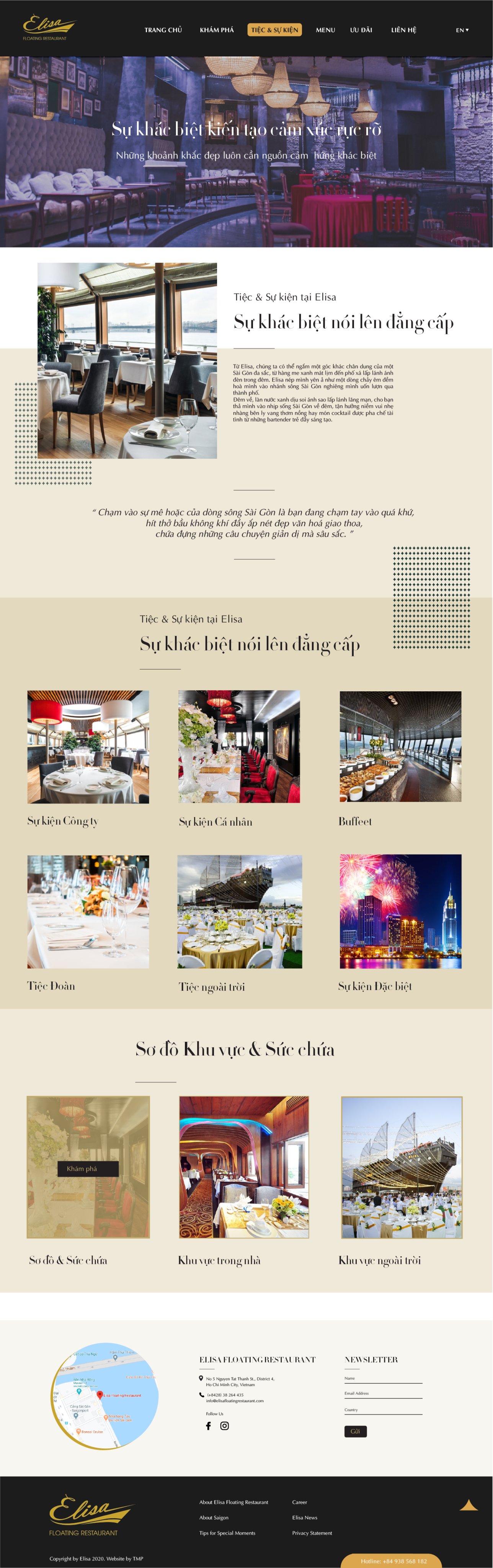 - Sản phẩm chủ lực là Tiệc & điểm tổ chức sự kiện có thể mở rộng, thêm bớt về sau, đặc thù này cần nhiều tính chất về Hình ảnh & Câu chuyện