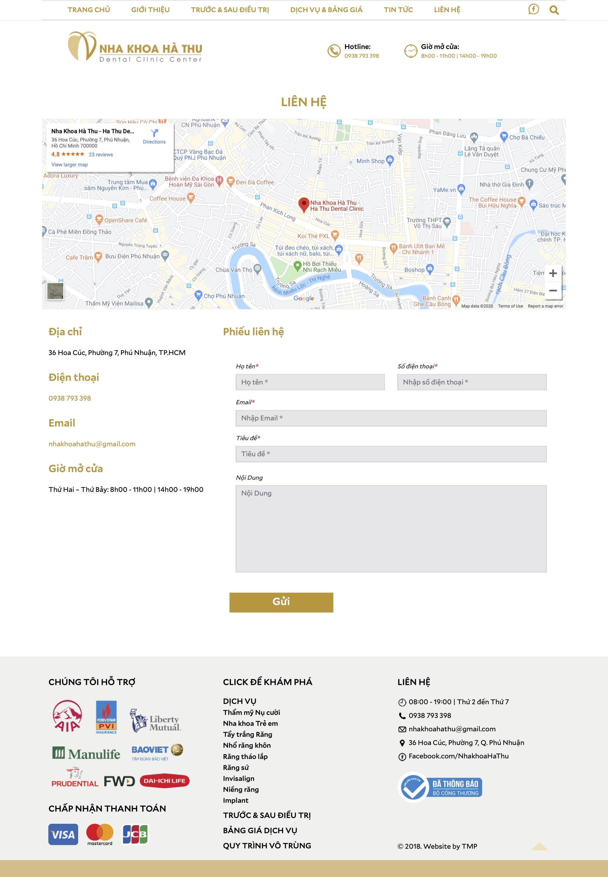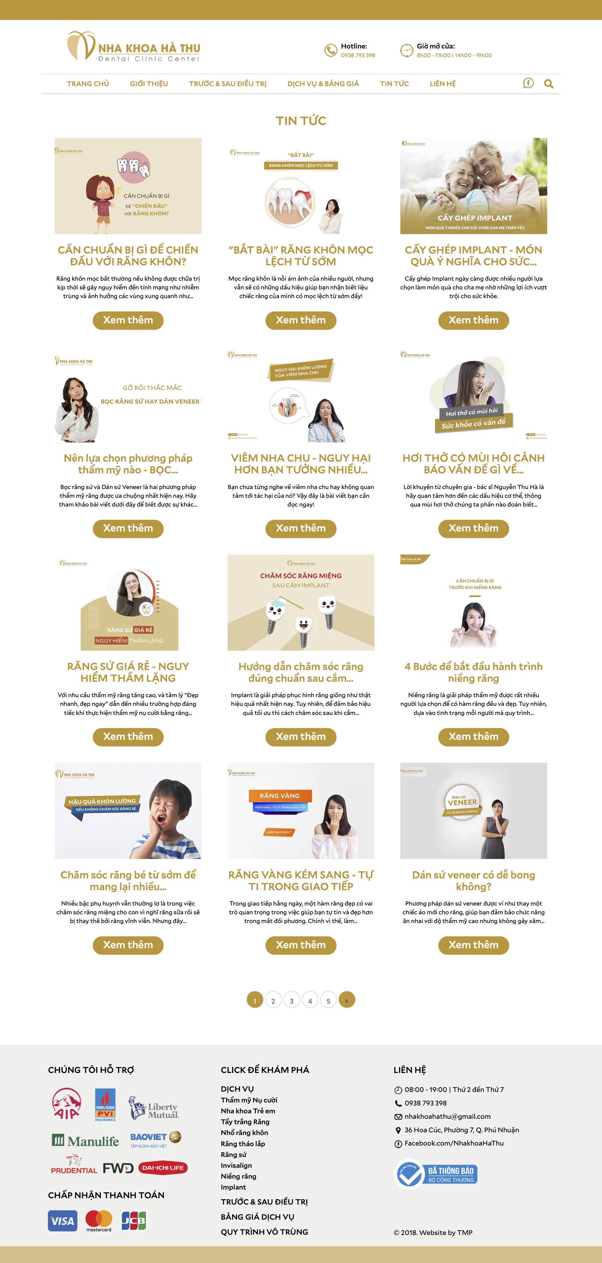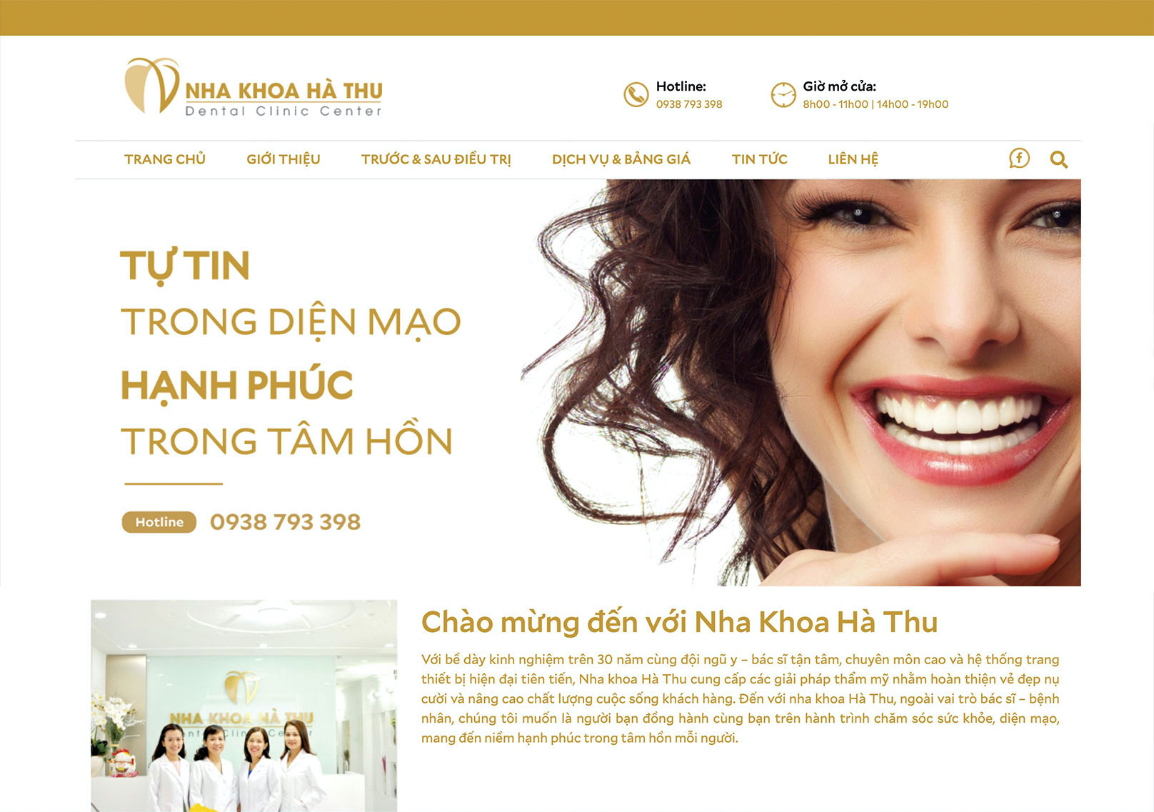 Nha khoa Hà Thu hoạt động trong lĩnh vực liên quan đến sức khỏe và sắc đẹp con người, vì vậy, thiết kế website TMP xây dựng theo tông màu chủ đạo trắng - vàng, tạo cảm giác an tâm, tin tưởng nơi người xem. Việc thiết kế và sắp xếp có logic của TMP tạo ra sự thuận tiện và tin cậy nơi người xem, từ đó giúp Nha khoa Hà Thu tiếp cận được đối tượng khách hàng tiềm năng và tăng doanh thu.