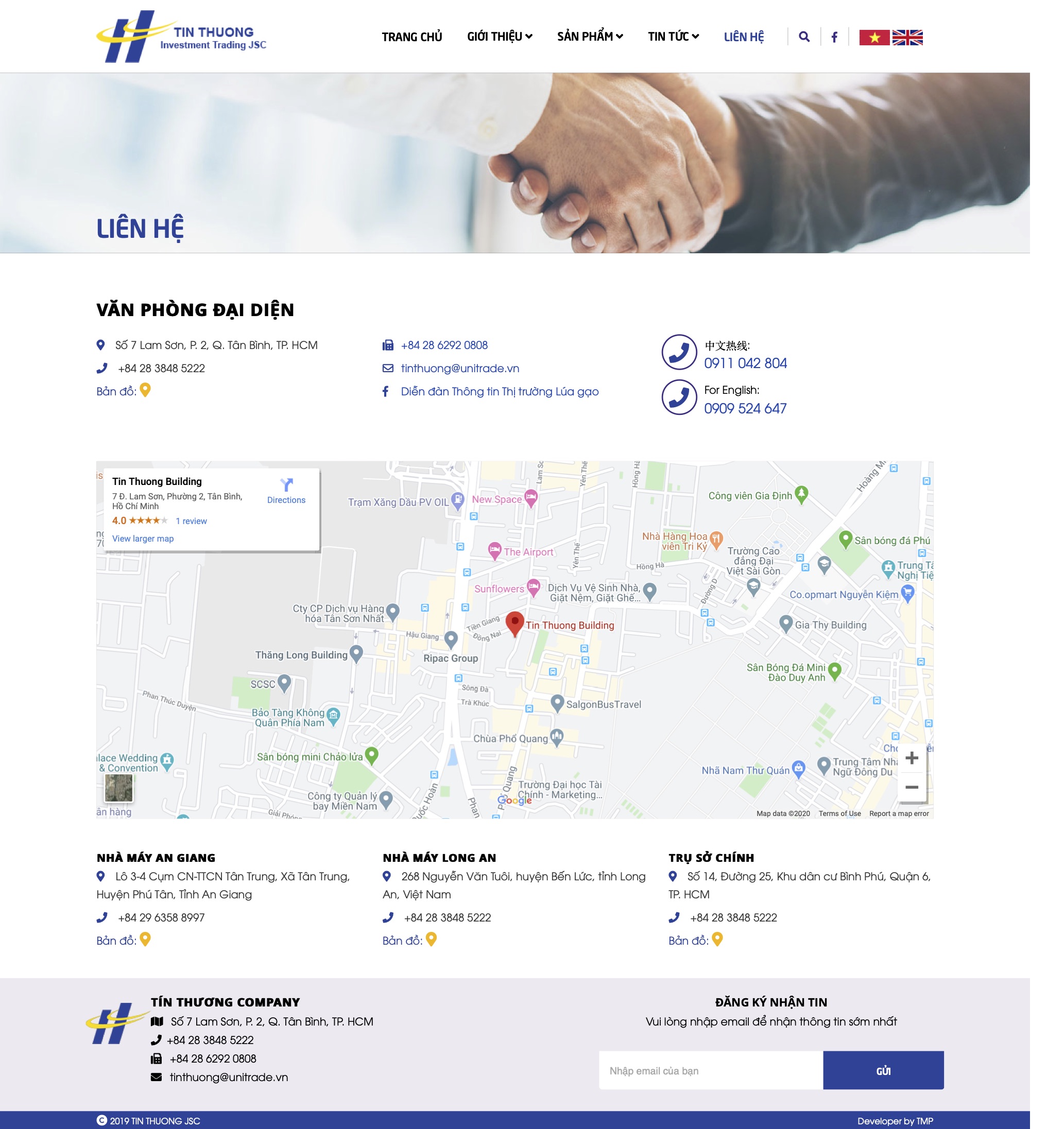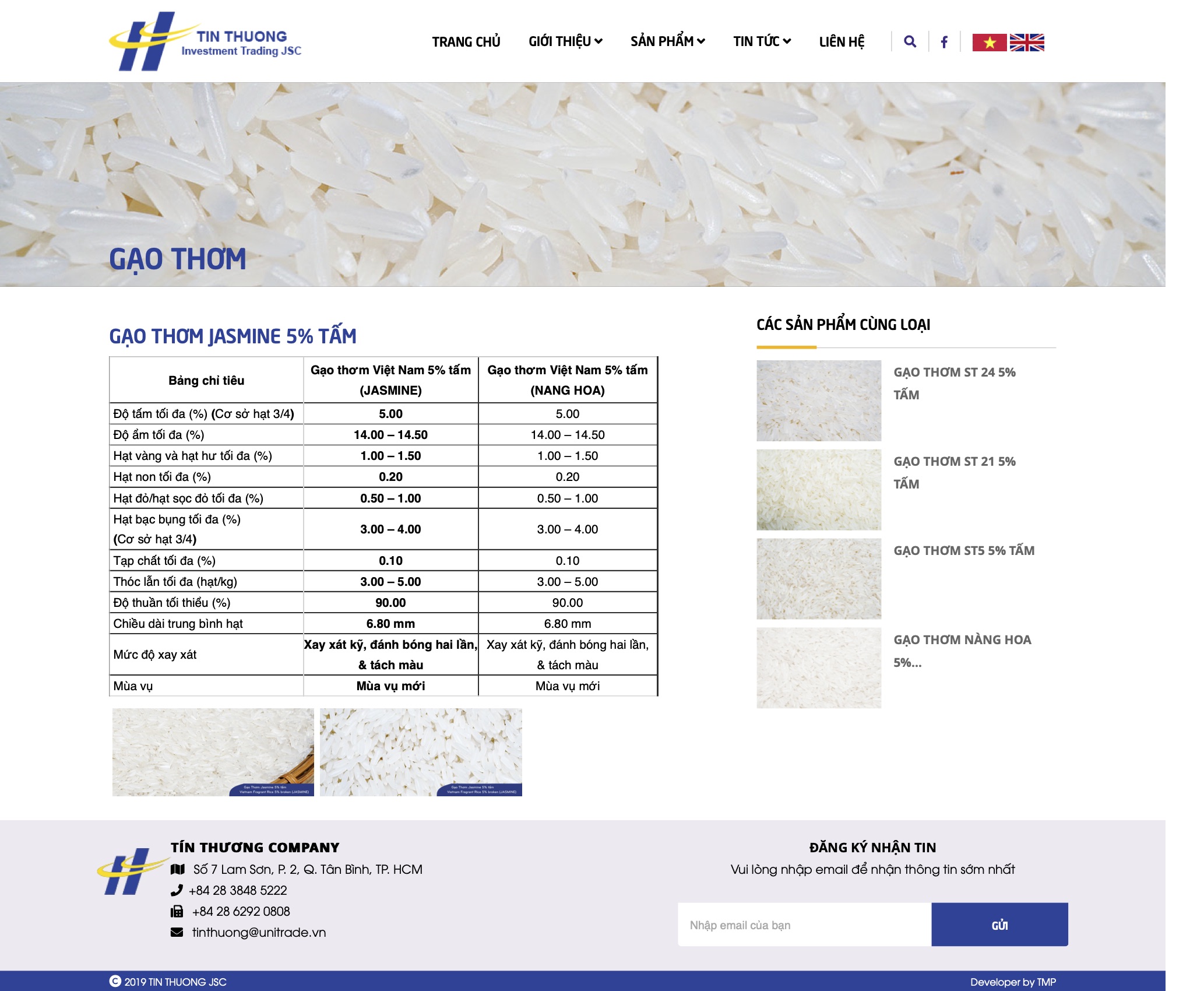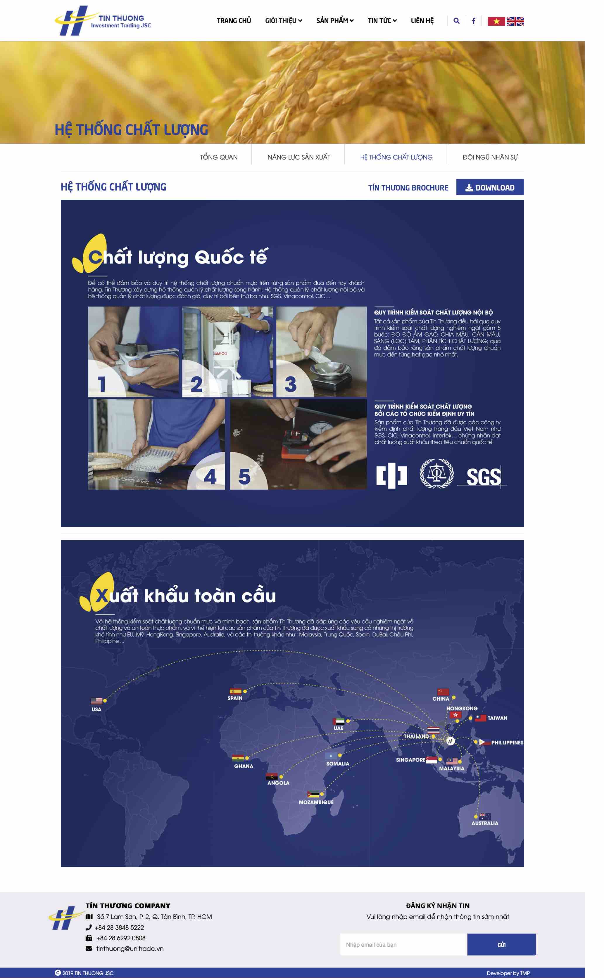 Với dự án thiết kế website và brochure cho Tín Thương - thương hiệu sản xuất và xuất khẩu gạo chất lượng tại Việt Nam, TMP chú trọng sáng tạo để đưa linh hồn công ty vào sản phẩm. Đề cao yếu tố xuất nhập khẩu, mang thương hiệu Việt vươn tầm thế giới, TMP sử dụng thiết kế sinh động và hiện đại, bắt nhịp với xu hướng mới của thị trường, gây ấn tượng cho từ cái nhìn đầu tiên về doanh nghiệp. Việc thiết kế và sắp xếp có logic của TMP tạo ra sự thuận tiện và tin cậy nơi người xem, từ đó giúp Tín Thương tiếp cận được đối tượng khách hàng tiềm năng, tăng doanh thu.