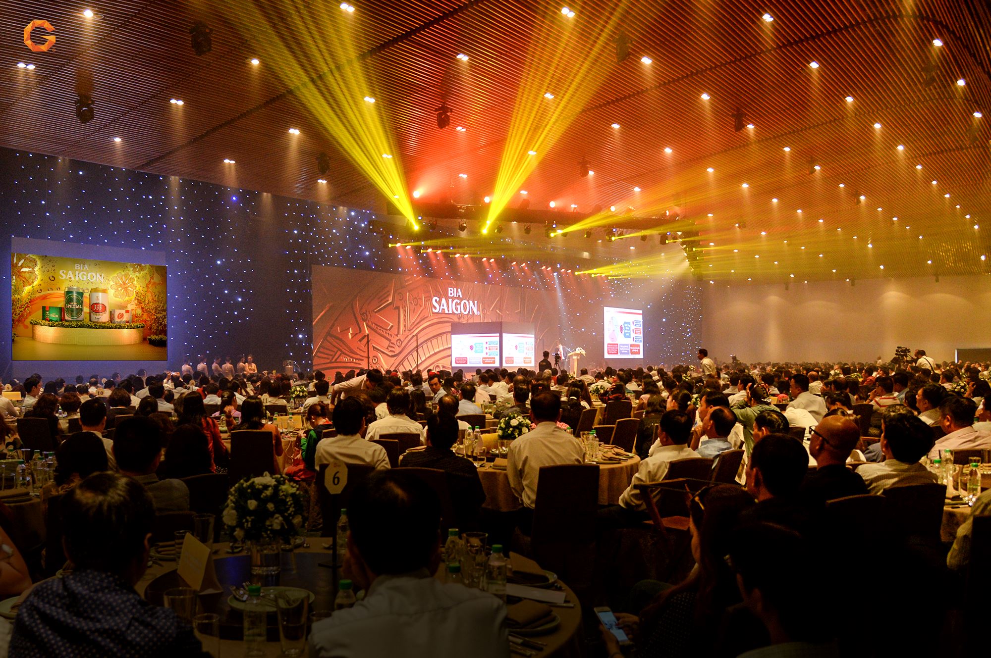 Bữa tiệc cuối năm của Sabeco đã được TMP chuẩn bị công phu với điểm nhấn là khu ẩm thực quy tụ các món ăn từ các miền đất nước kết hợp cùng bia Sabeco của chính công ty. Chúng tôi khéo léo thiết kế bàn tiệc ấm cúng trong không gian rộng rãi để mọi người có dịp trò chuyện sau một năm cùng nhau phấn đấu. TMP tin rằng, với sự chuyên nghiệp trong kịch bản chương trình, đưa mọi người nhìn lại quá trình làm việc và phát triển trong suốt một năm sẽ là dấu ấn đọng lại trong tâm trí mỗi nhân viên, làm động lực cho sự nỗ lực không ngừng, hứa hẹn những thành tích ấn tượng hơn trong năm mới.